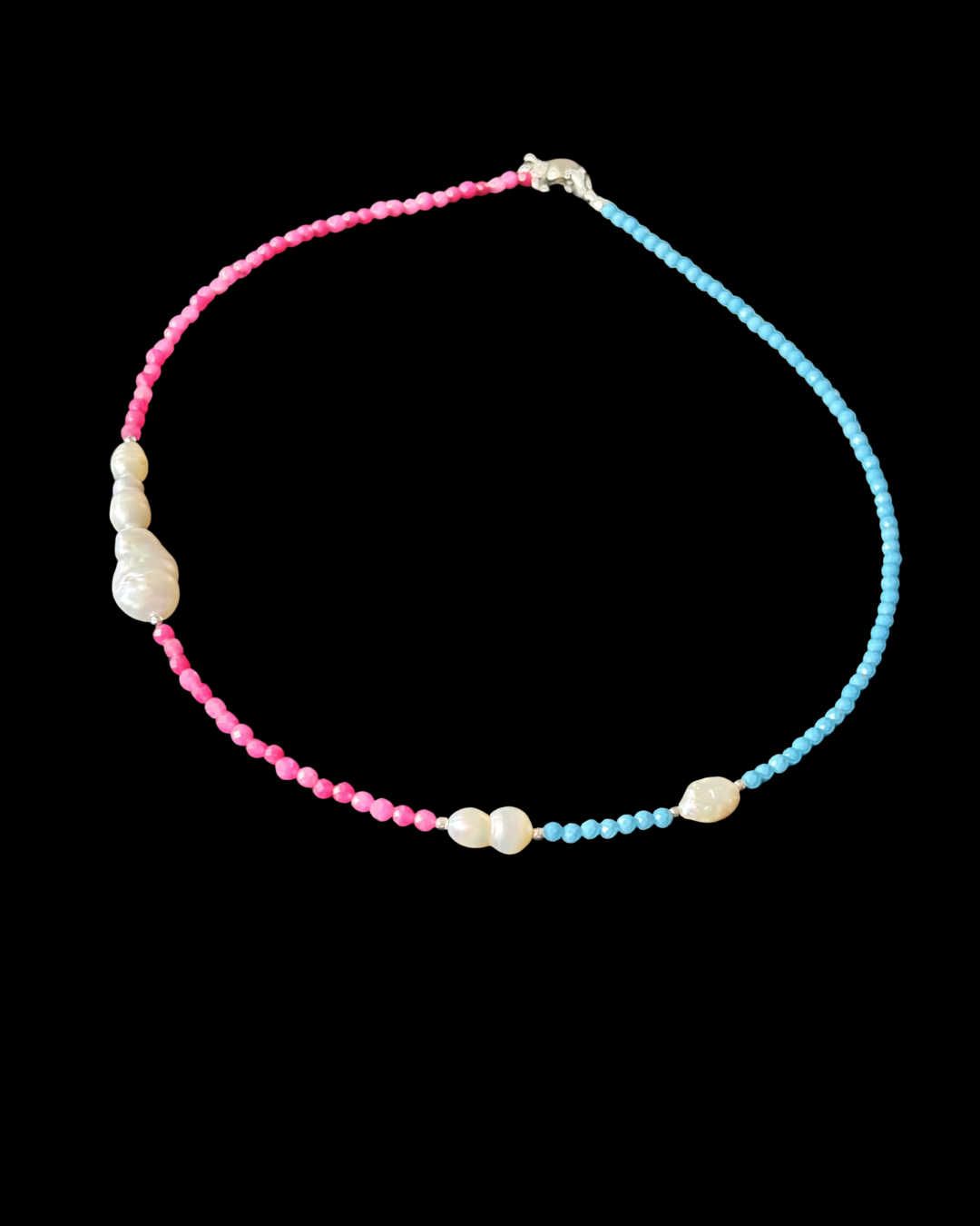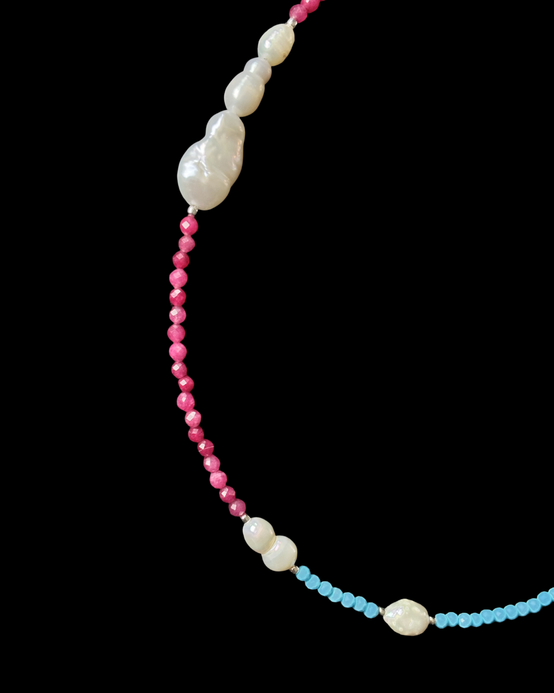 Modrý tyrkys a růžový křemen.