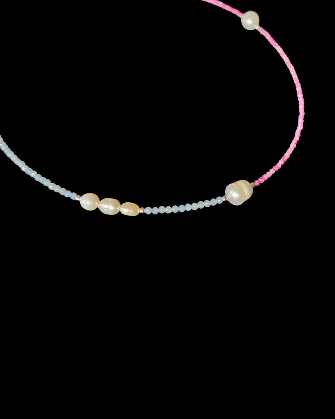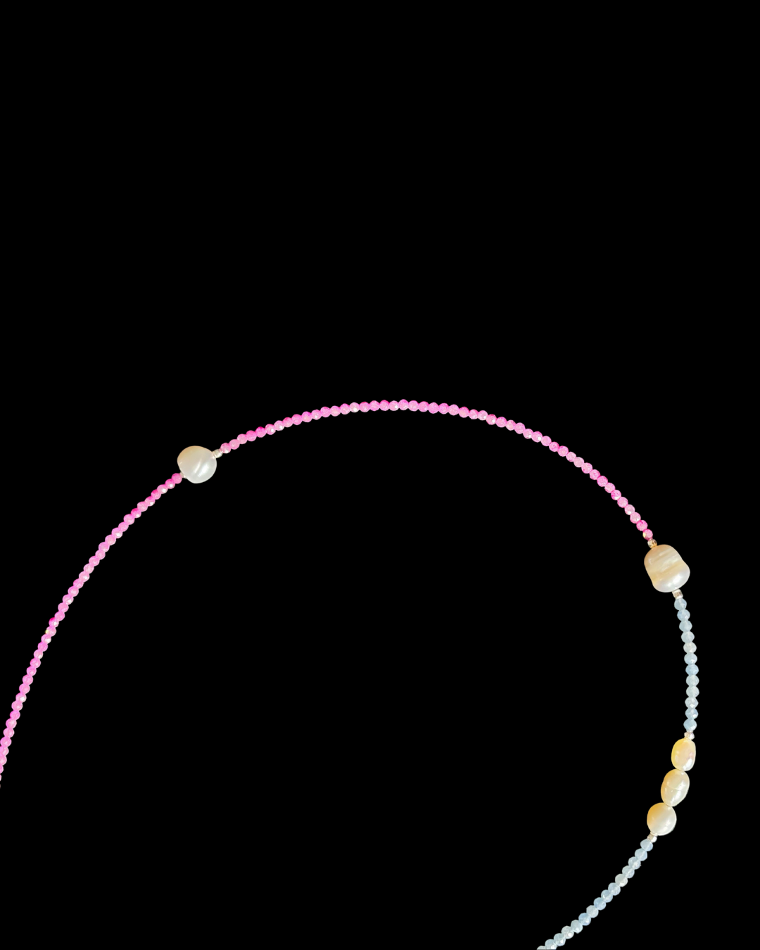 Délka nejkratší varianty náhrdelníku je 43 cm.